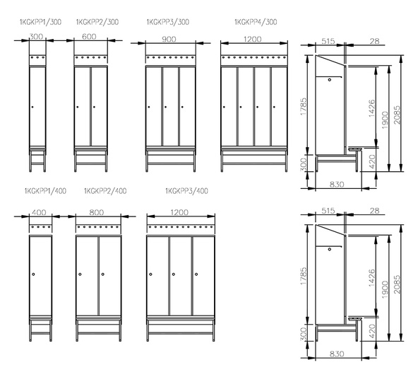 Kõikidel garderoobikappidel on standardvarustusena kaasas silinder või ripplukk, mütsiriiul, riidepuutoru kandur koos kahe riputuskonksuga, loomuliku ventilatsiooni avad kapi laes ja põhjas.
